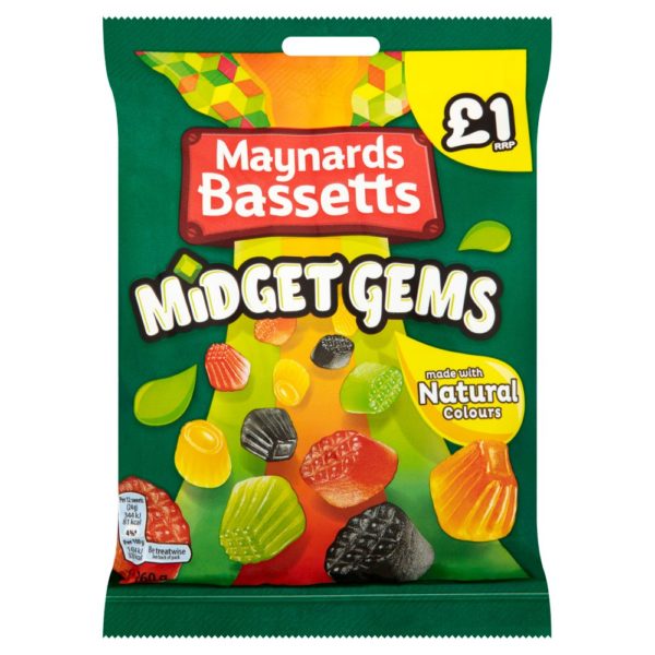 - Maynards Bassetts Midget Gems £1 Sweets Bag 160g